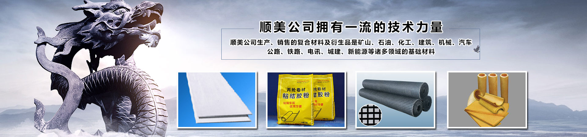 新疆順美新材料有限公司,是成都順美國際貿易有限公司駐新疆的分公司。順美國際貿易有限公司(以下簡稱順美公司)成都總部成立于1998年,分公司成立于2008年。是一家科技型研發(fā)、生產及國內國際貿易型企業(yè)。公司主要以研發(fā)、生產、銷售各種新材料、化工、建材、防水、防腐、防火、保溫材料、土工材料、橋梁加固材料及國際國內貿易為主。公司下屬員工二百余人,并擁有一支具有高素質從事新材料、化工、建材及國際貿易數十年經驗的研發(fā)、生產和銷售團隊!順美公司擁有好的技術力量,嚴格的質量檢驗標準和先進的生產設備,實行科學化的管理,產品擁有自主知識產權,涵蓋多項國家專利,并嚴格按照標準進行生產、加工和銷售。順美公司生產、銷售的復合材料及衍生品是礦山、石油、化工、建筑、機械、汽車、公路、鐵路、電訊、城建、新能源等諸多領域的基礎材料。順美公司經過多年的累積和發(fā)展,現(xiàn)已建立完善的研發(fā)、生產、銷售一條龍服務體系,在產業(yè)鏈銜接、技術、服務、物流、人才聚集等方面成效顯著...